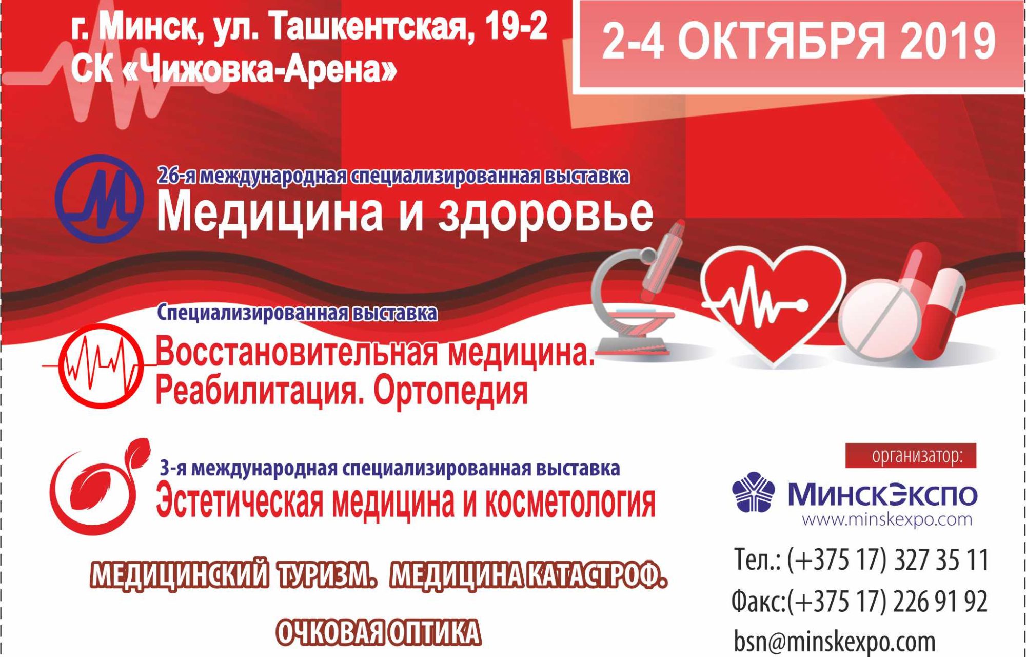 Медицина и Здоровье — 2019 Когда: 02/10/2019 - 04/10/2019 Где: г. Минск, ул. Ташкентская, 19-2 Веб-сайт: http://minskexpo.com/medicina-i-zdorove